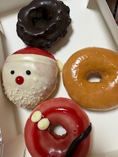 こんばんはー!!律です😊🩷 先週雪が降ってから 一気に寒くなりましたねー🥲💦💦 寒いのは大好きだけど 風邪ひかないか心配です(´._.`)笑 皆さんも体調には気を付けて👍🏻🤍 クリスマスはお仕事なので どこも行けないけれど😢😢 日曜日のお休みの日に 可愛いドーナツ買いました🍩💕💕💕 クリスマス気分です🎶🎶 今週の出勤は 火水木金土出勤します🍀 今週もよろしくお願いします(♡´▽`♡)